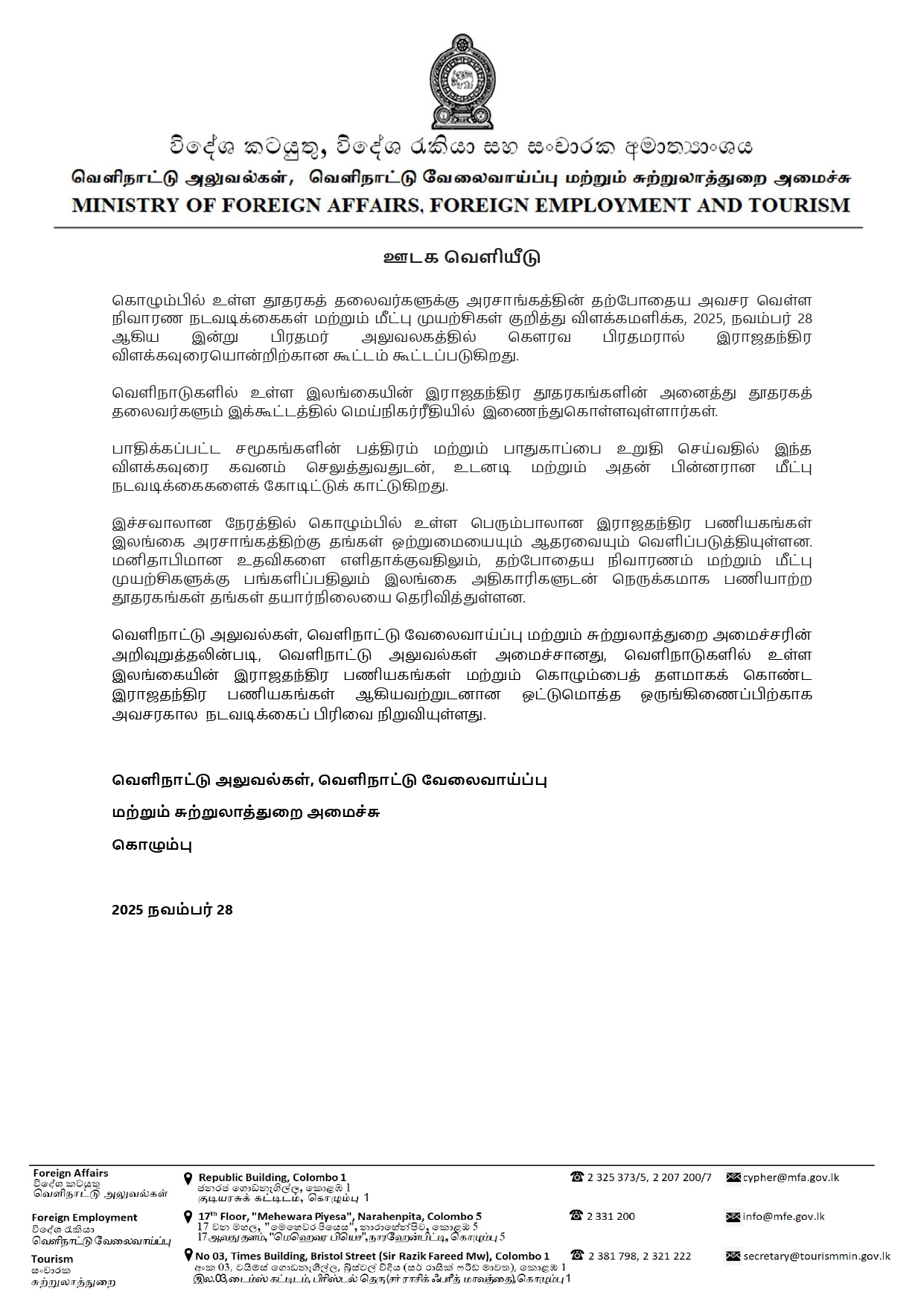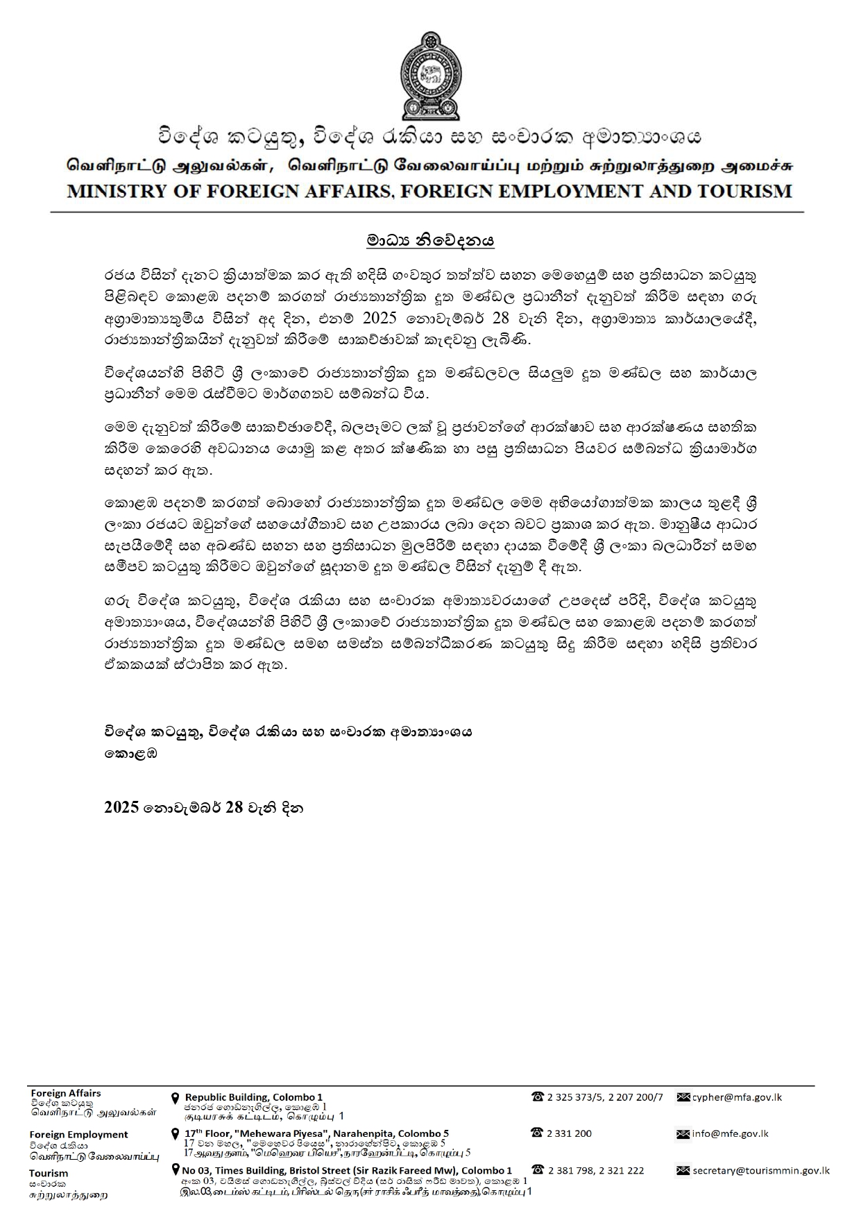 Ongoing severe weather condition in Sri Lanka November 28, 2025 General, News Please await further update on disaster relief programs in Sri Lanka