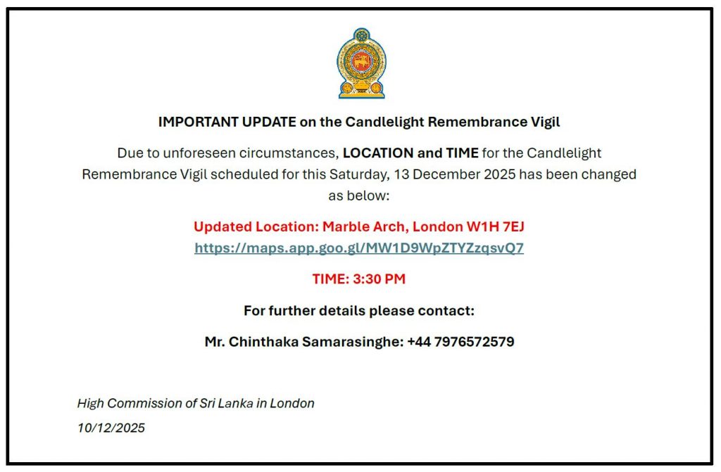 On Sunday, 30 November 2025, the High Commission of Sri Lanka in the United Kingdom convened a meeting to coordinate collective disaster relief support for communities devastated by Cyclone Ditwah and the severe flooding it caused. The meeting also focused on mobilizing assistance for the long-term rebuilding of the country.