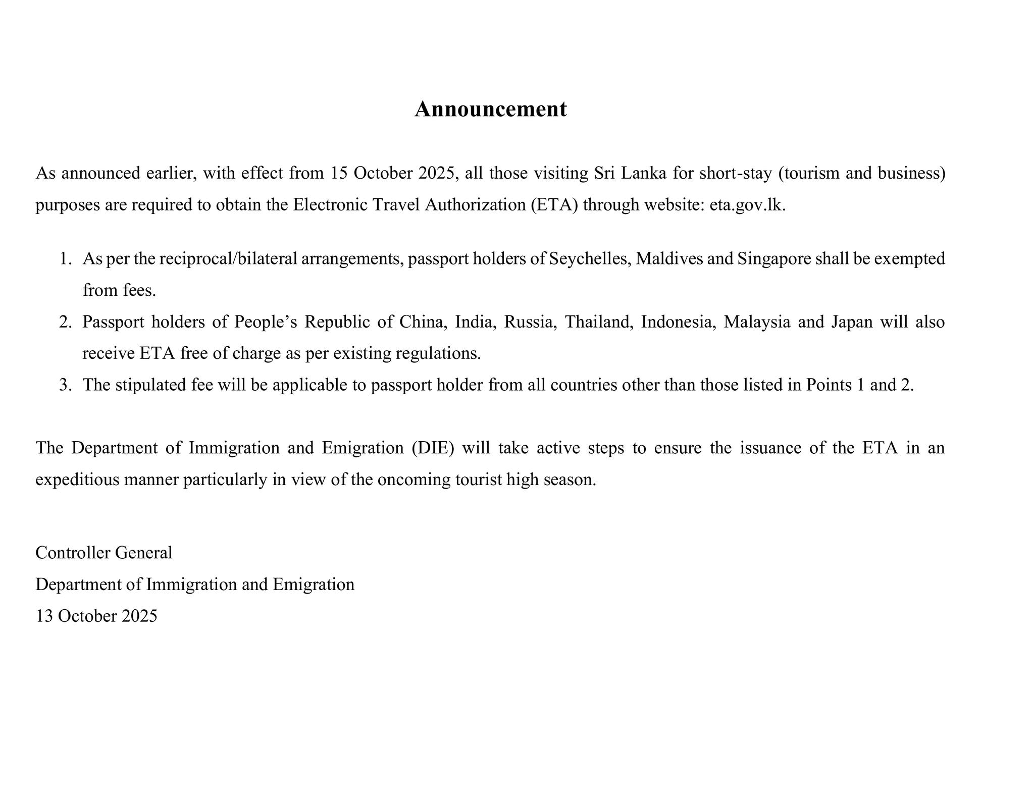 Please make prior appointments for all Consular Services via the link https://hclappointments.embassyonline.lk/